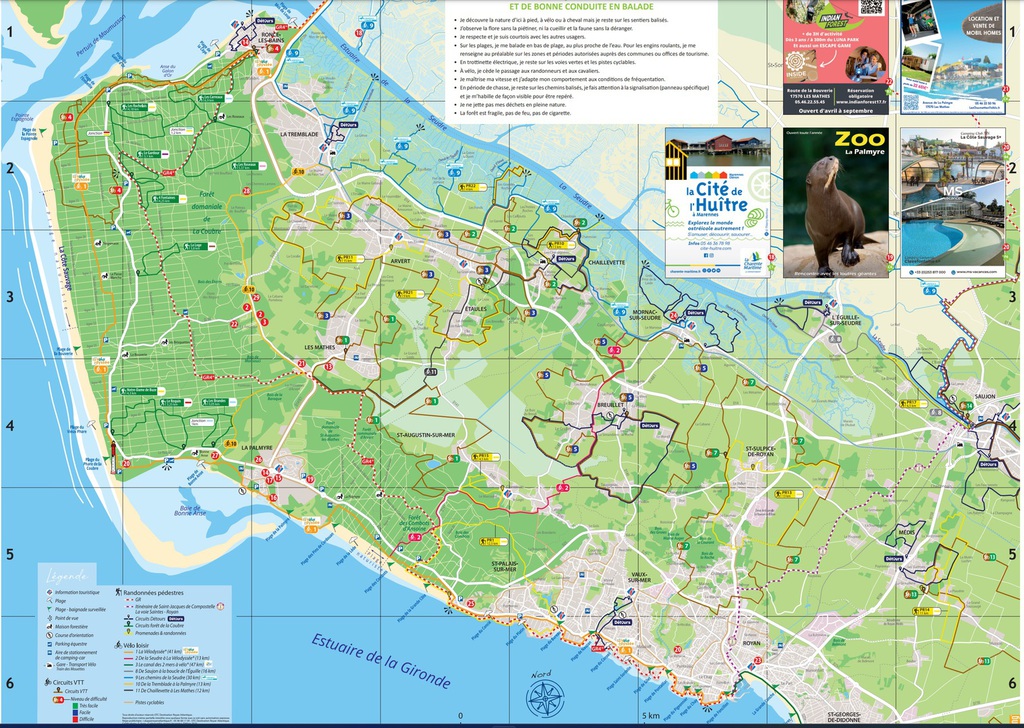 Activités, animations visites : Zoo de la Palmyre ; Parc la gataudiere ; La cité de l'huitre ; Accrobranche Indian Forest ; Musée des commerces d'autrefois ; Aquarium de la Rochelle ; Casino de Pontaillac ; Casino de Ronce-Les-Bains ; Port des salines ; ULM etc ...